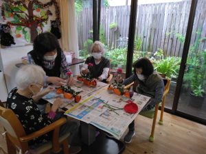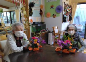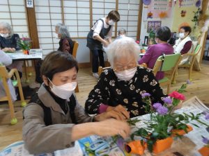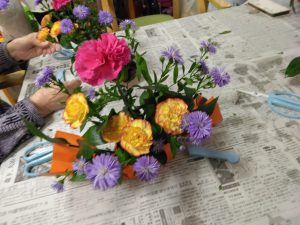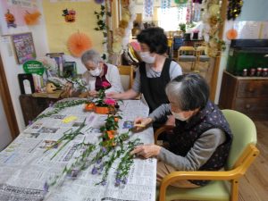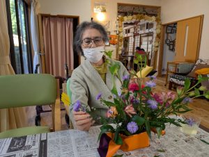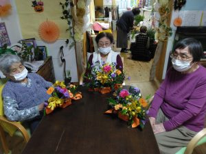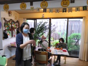 デイサービスの芸術の秋 ハロウインフラワーアレンジ教室🌹